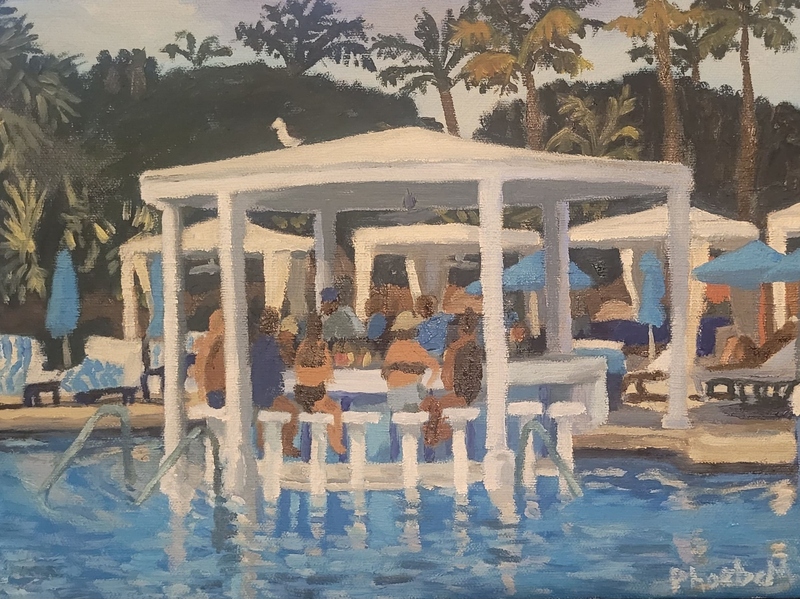 Coral Pool Swim-up Bar, 9 x 12", Oil on Canvas, 2023